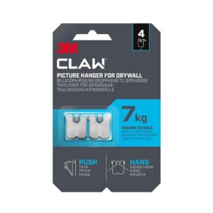 3M CLAW Drywall Plasterboard Picture Hanger Wall Hooks Holds Up To 7kg Pack of 4
