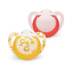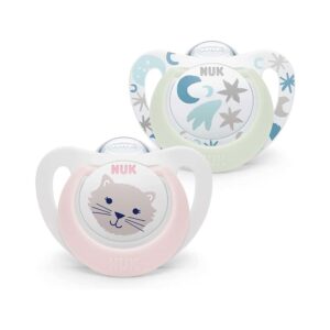 NUK Star Newborn Day & Night Baby Soother Dummy Silicone 0-6 Months 2 Count – Pink