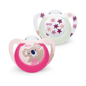 NUK Star Day & Night Baby Soother Dummy Silicone 6-18 Months 2 Count – Pink