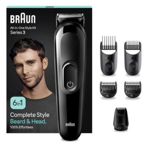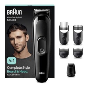 Braun Series 3 6-In1 All-in-One Style Kit Male Grooming Beard & Precision Trimmer Hair Clippers Lifetime Sharp Blades Black