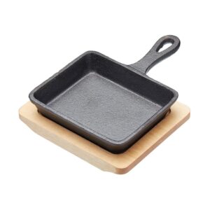 KitchenCraft Artesa Cast Iron Mini Gratin Dish With Serving Board 12cm x 16.5cm x 2cm – Black/Beige