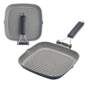 MasterClass Grill Pan 20cm Non-Stick Griddle Pan Induction-Safe Folding Handle Aluminium Stainless Steel Grey