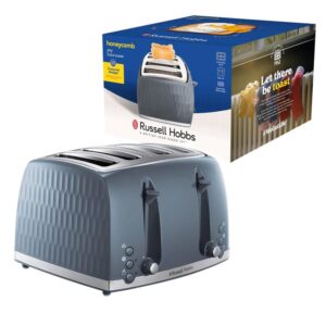 Russell Hobbs Honeycomb 4 Slice Toaster 6 Browning Levels Frozen/Cancel/Reheat Extra Wide Slots High Lift 1500W Grey