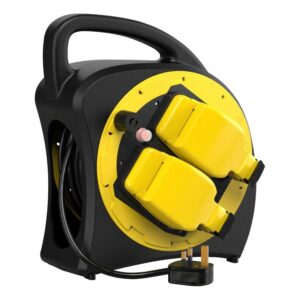 SLx Extension Lead Industrial 25m Open Drum Cable Reels 2 Socket 16A Fused 110V – Yellow