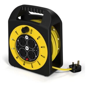 SLx 4 Socket Outdoor Extension Lead 25m 13A Fused UK Plug Heavy Duty Extension Cable Reel – Yellow/Black