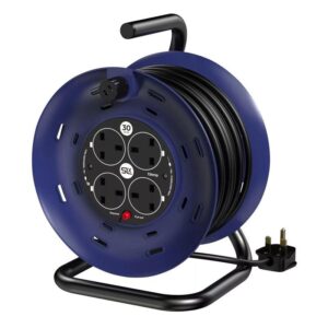 SLx 4 Socket Extension Lead UK Plug Socket 30m Heavy Duty Cable Reel 13A – Black & Blue