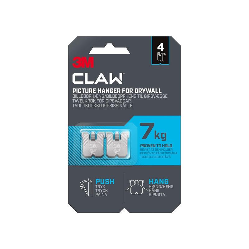 3M CLAW Drywall Plasterboard Picture Hanger Wall Hooks Holds Up To 7kg Pack of 4