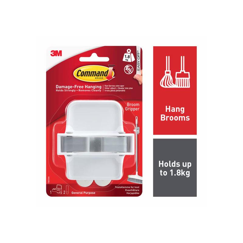 3M Command Broom Gripper Large 1 Gripper And 2 Large Strips 1.8kg Holding Power White