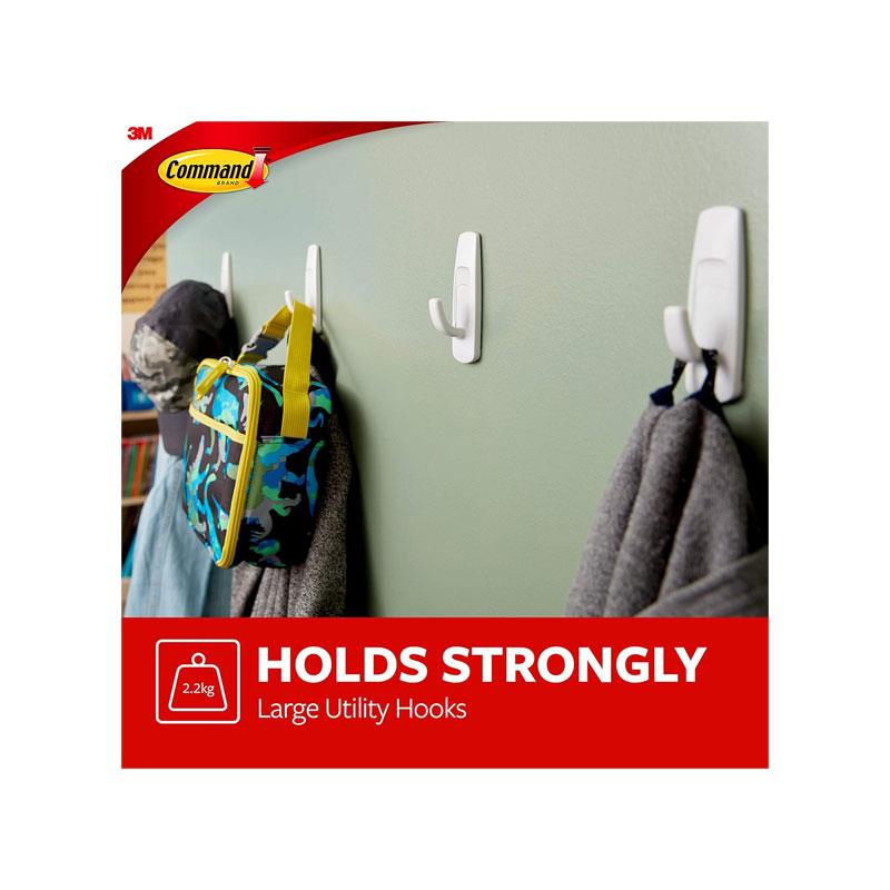 3M Command Utility Hooks Large 1 Hook And 2 Large Strips 2.2kg Holding Power White - Image 6