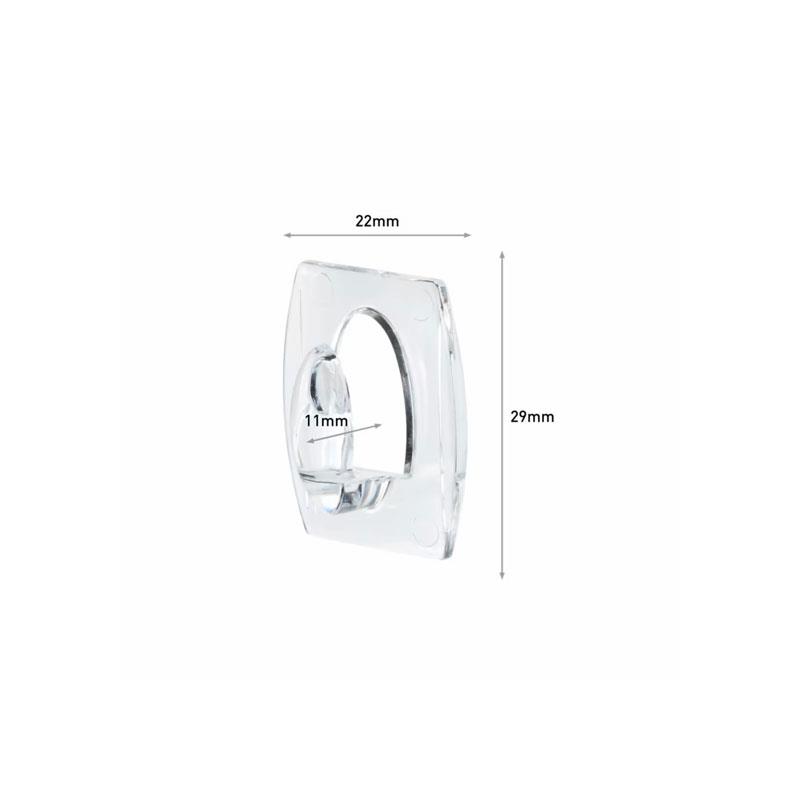 • Pack Includes: 6 mini clear hooks and 8 clear adhesive strips.