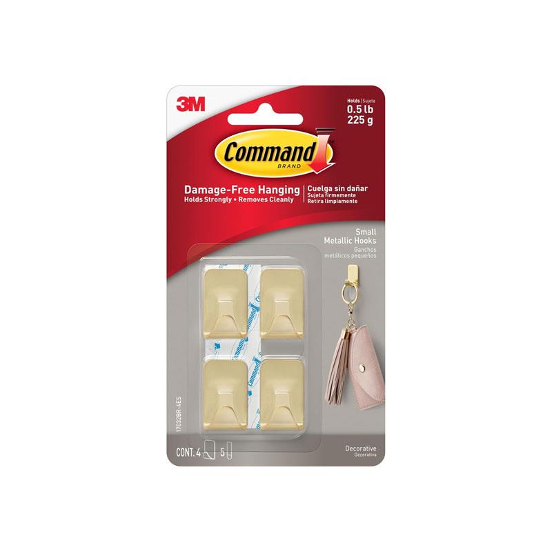 3M Command Small Metallic Hooks are compatible with a wide range of smooth surfaces such as painted walls, finished wood, tiles, metal, and glass. A smart, reusable hanging solution for temporary or permanent organization needs.