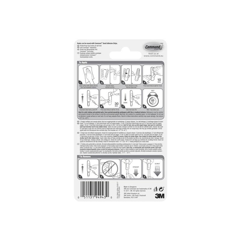 3M Command Utility Hooks Small 6 Hooks And 12 Small Strips 450g Holding Power Value Pack White - Image 7