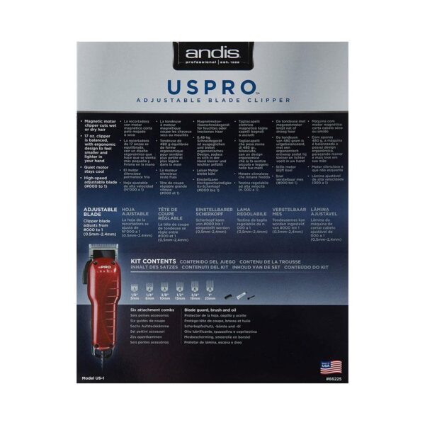Andis US Pro Adjustable Blade Hair Clipper Plug Super Taper - Red - Image 4
