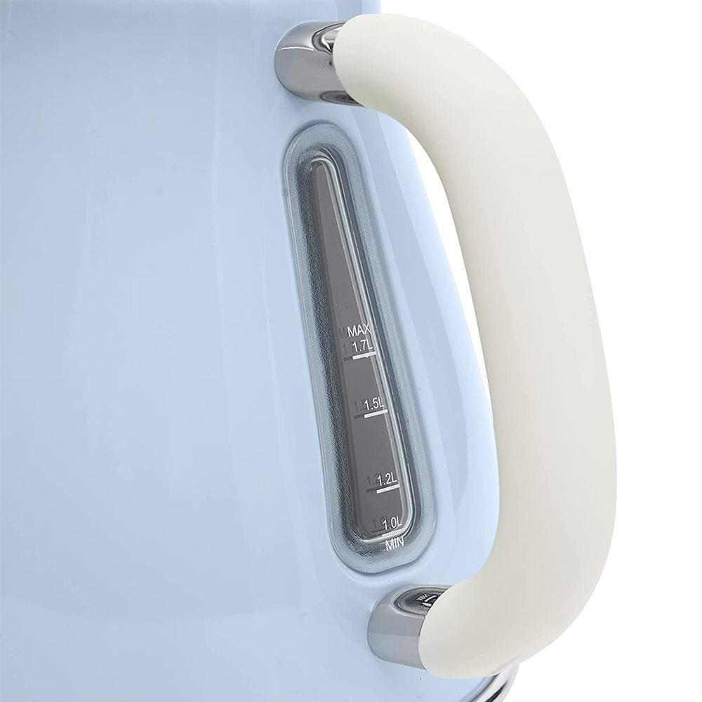 Add a touch of retro charm to your kitchen with the Ariete Vintage Cordless Jug Kettle in a stunning blue enamel finish. This stylish kettle combines classic design with modern functionality, featuring chrome accents and a soft-touch ergonomic handle that makes pouring a breeze for all ages. With a 1.7-litre capacity, it can boil up to seven cups of water in moments, thanks to the powerful 2000W concealed heating element.
