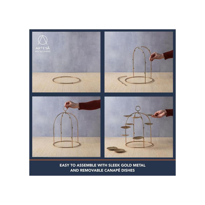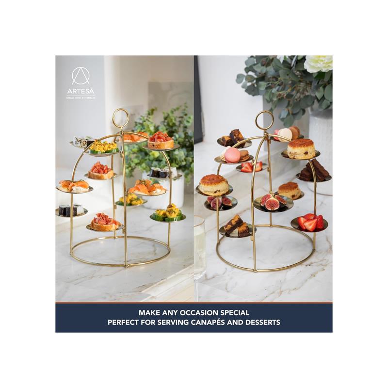 Artesa Brass Canape Serving Tree Serving Stand With Removable Metal Trays For Appetisers Nibbles And Dinner Parties Gold