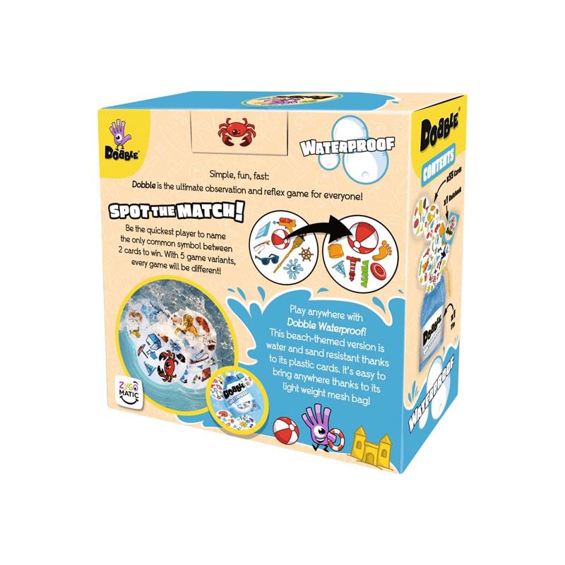 Dobble Waterproof is a fast-paced family card game that tests speed, observation, and reflexes. Designed for fun anywhere, this special waterproof edition features fully water-resistant playing cards that float on water, making it ideal for poolside, beach, camping, and travel play.