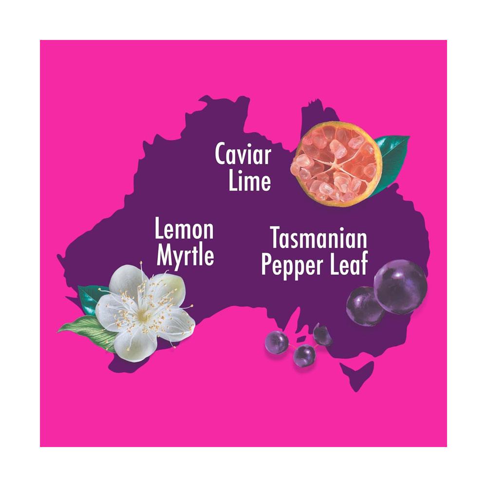 • Infused with Australian Superfruits – Caviar Lime (antioxidant-rich), Tasmanian Pepperberry (mineral-packed), Lemon Myrtle (revitalising)