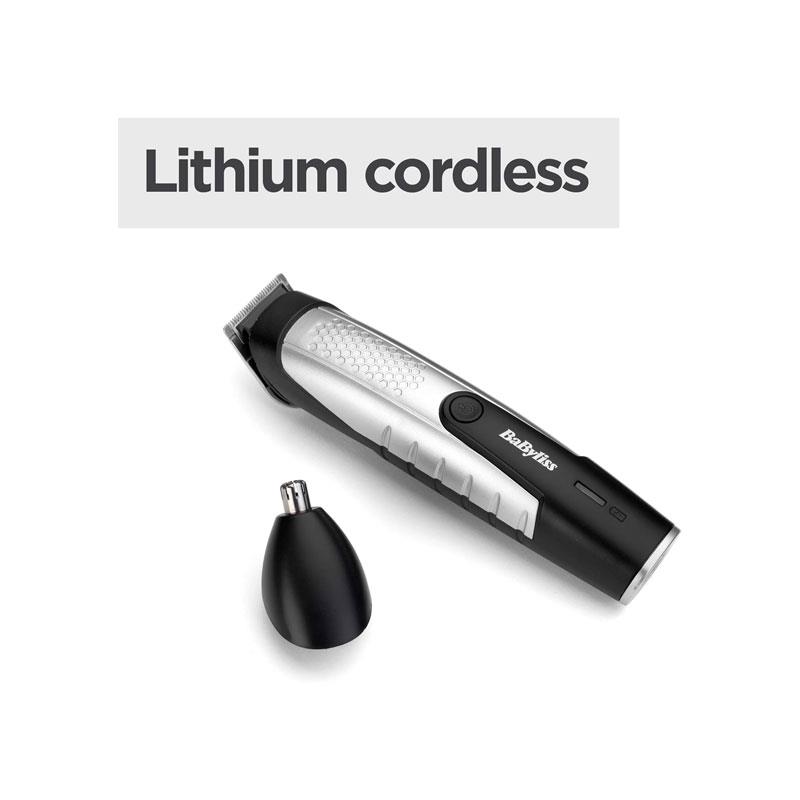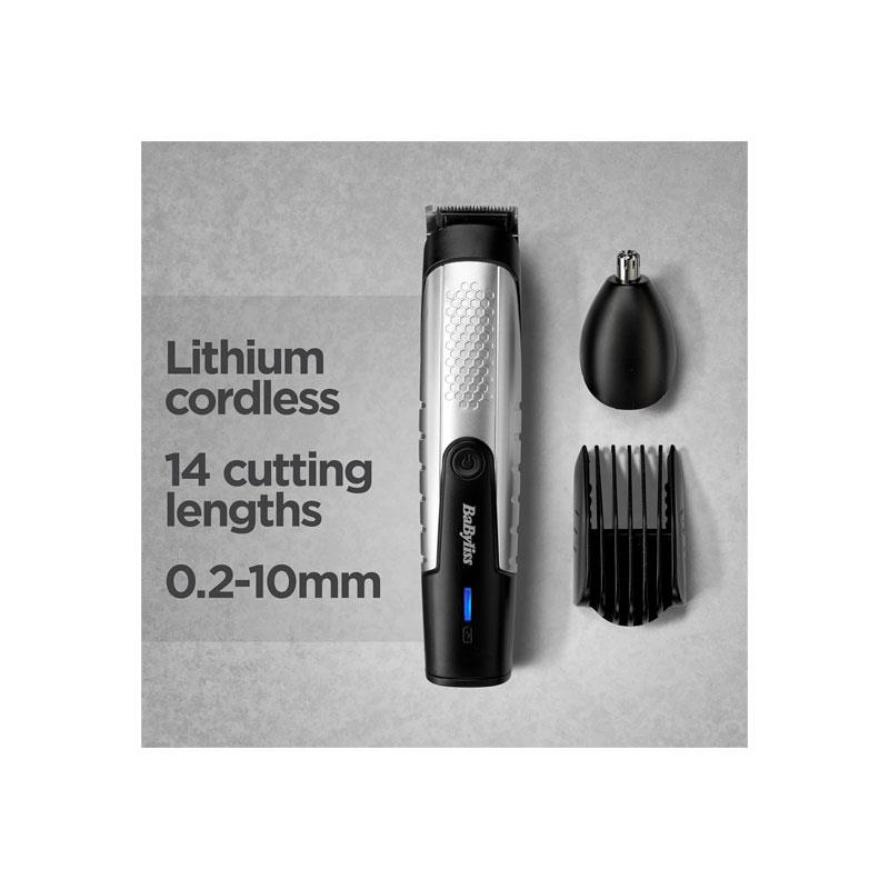 BaByliss Lithium Power Beard Trimmer Cordless Grooming Kit Nose And Ear Trimmer 14 Cutting Lengths 0.5–10mm Stainless Steel Blades Black