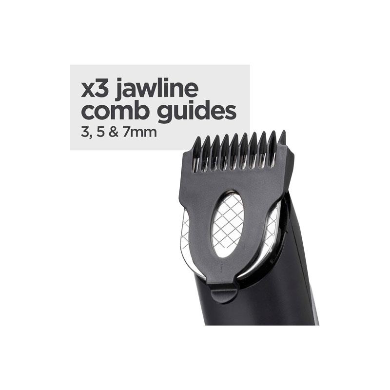 - Comb Guides: 9 easy-fit comb attachments including adjustable beard, stubble & jawline combs