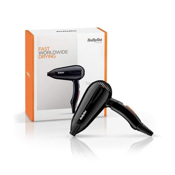 Babyliss Travel 2000 W Hair Dryer Lightweight Compact Small With Folding Handle – Black