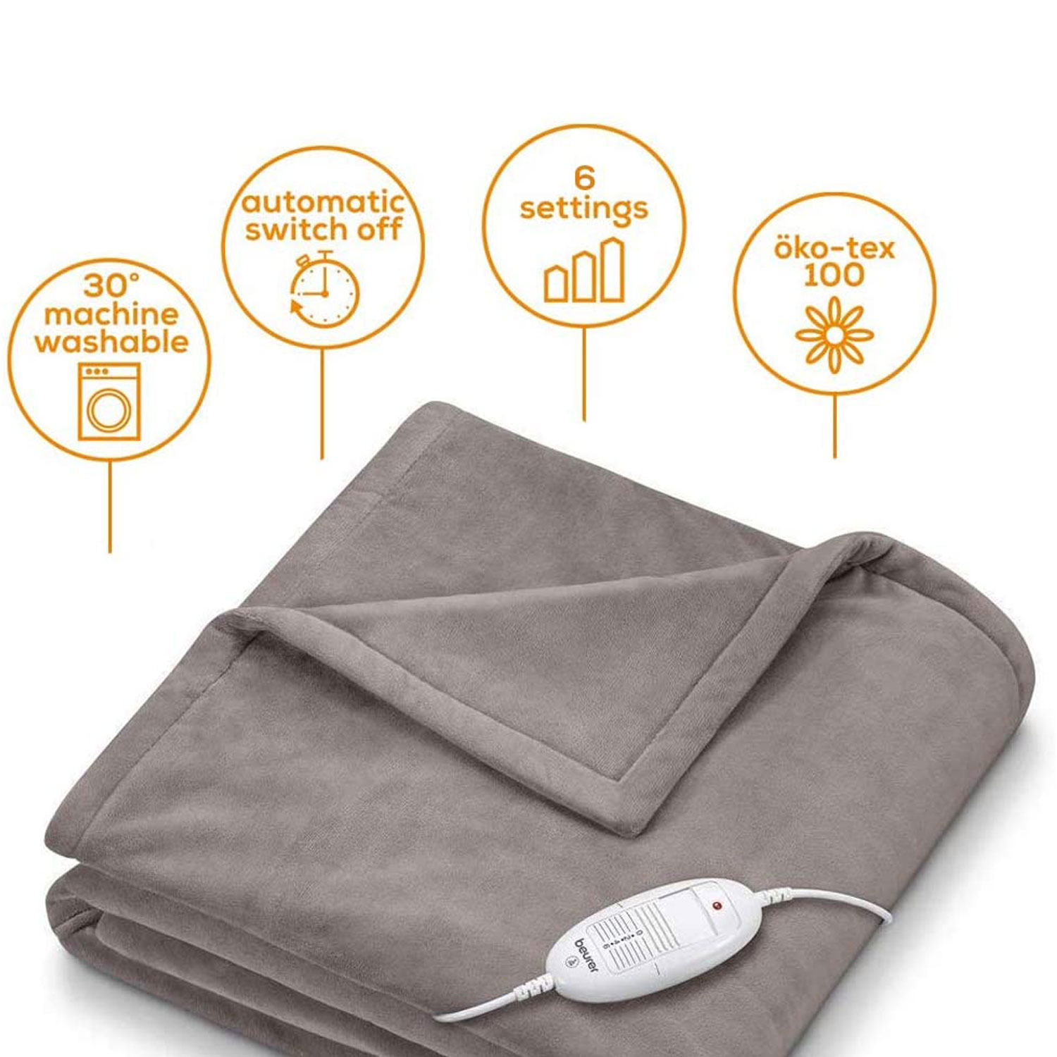 Beurer Cosy Heated Electric Over Blanket 6 Heat Settings 180 x 130 cm – Grey