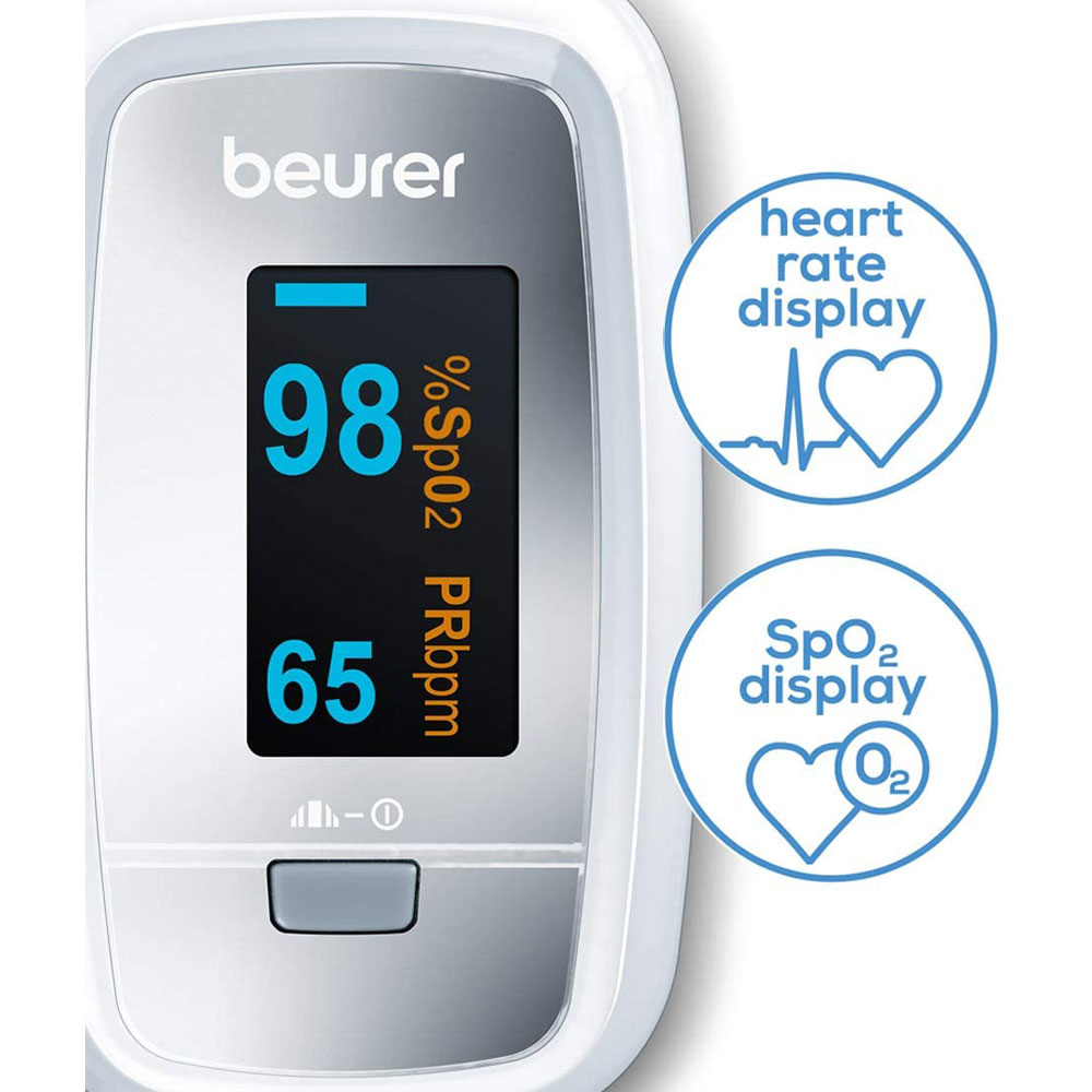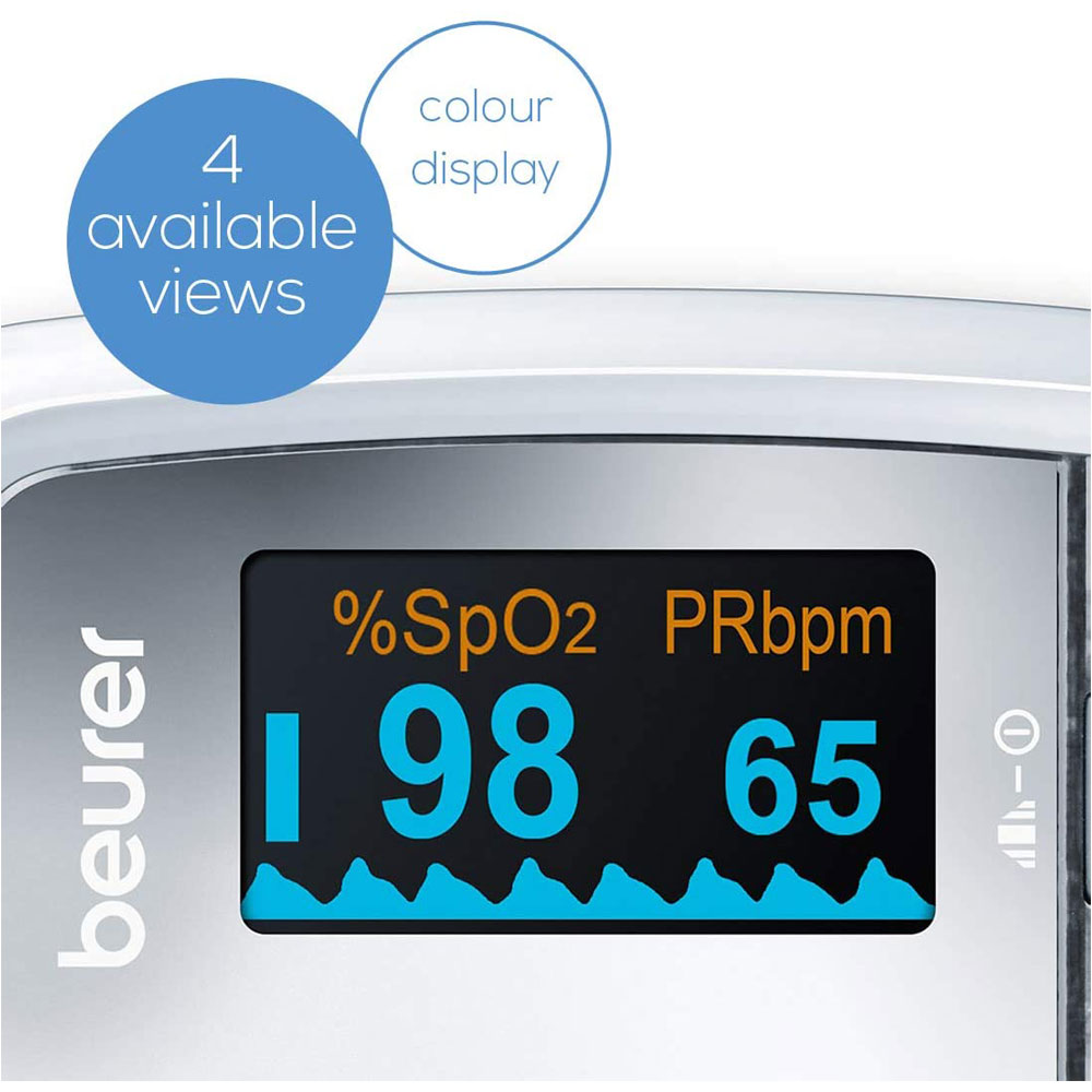 Beurer Fingertip Pulse Oximeter Medical Device With 4 Colored Graphic Display Formats – Grey