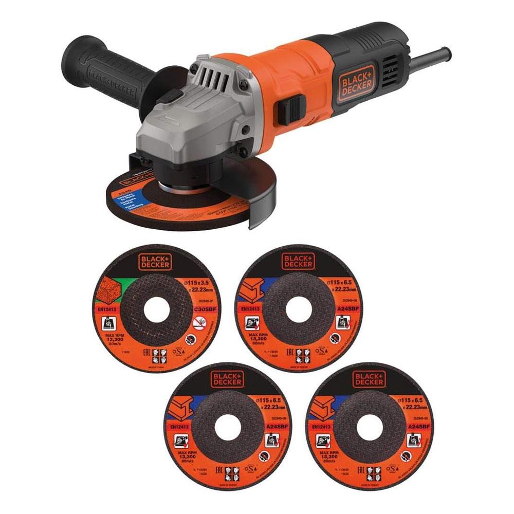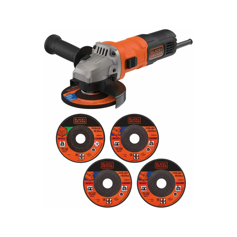 Black & Decker 115mm Angle Grinder 710W With 5 Cutting Discs Cutting Guard And Grinding Guard - Orange/Black