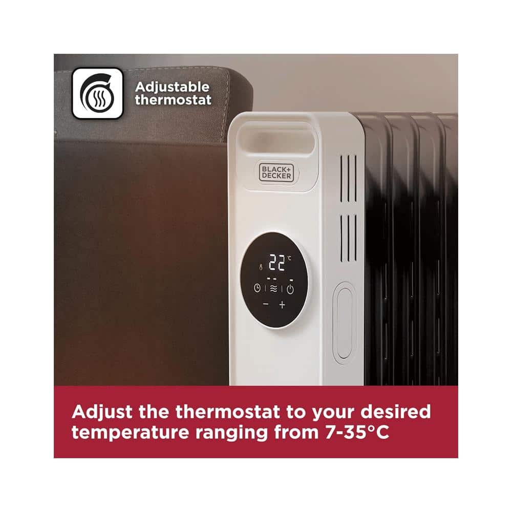 Black & Decker Digital Oil Filled Radiator 1500W 3 Heat Settings Adjustable Thermostat 24hr Timer - White - Image 10