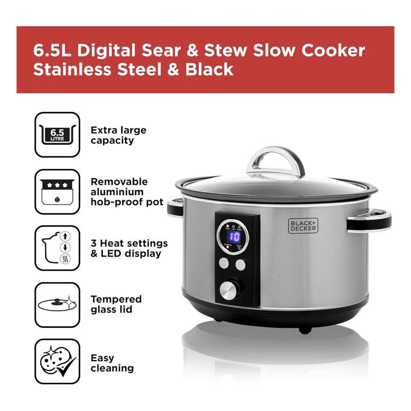 Black & Decker Digital Slow Cooker – 6.5L Extra-Large Capacity | Stainless Steel