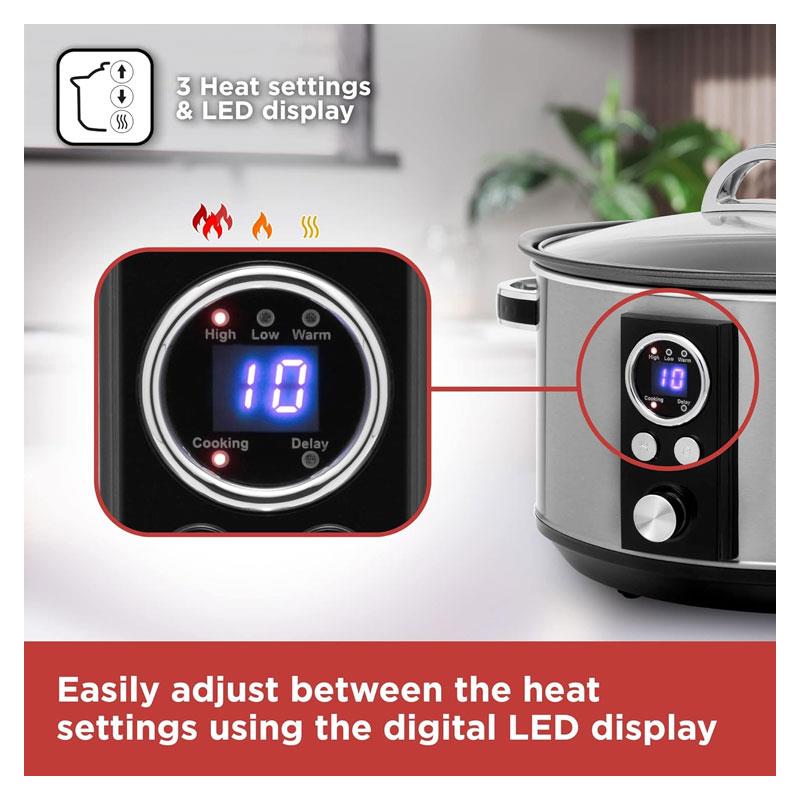 Black & Decker Digital Slow Cooker Stainless Steel 320W 6.5 Litre Silver - Image 5