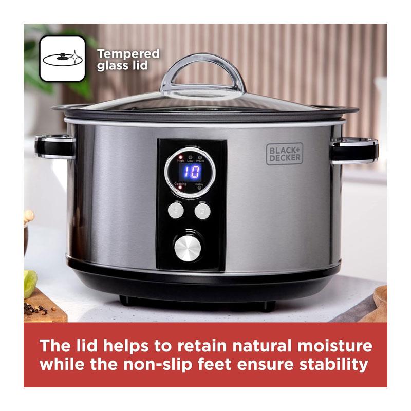 Black & Decker Digital Slow Cooker Stainless Steel 320W 6.5 Litre Silver