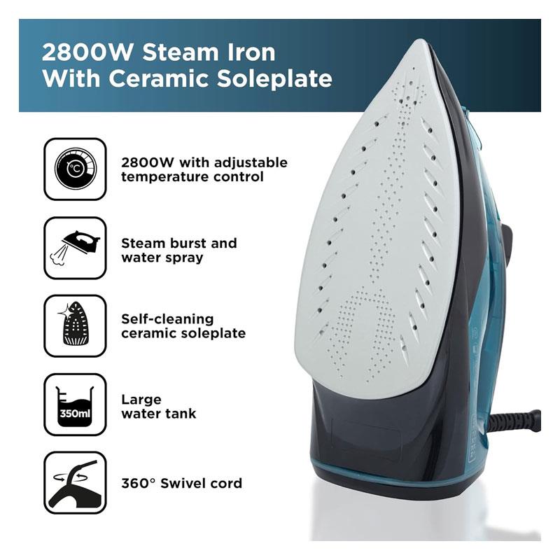 • Powerful 2800W Performance – Fast heat-up time lets you get started instantly; ideal for thick fabrics and stubborn creases.