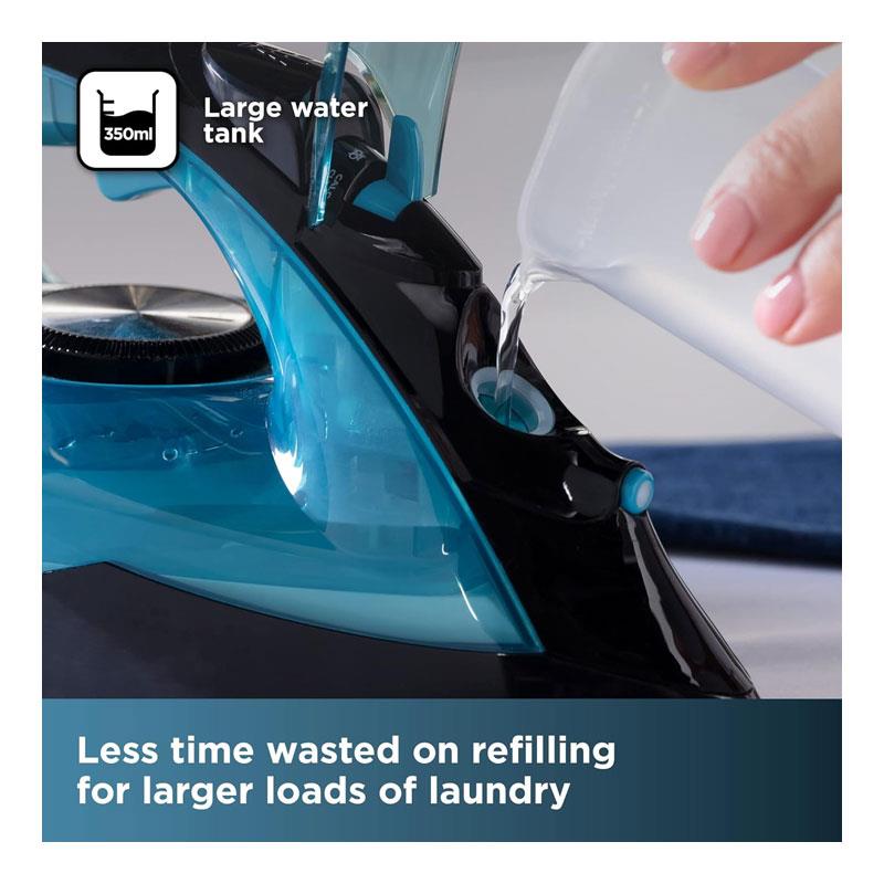 • Large 350ml Water Tank – Iron more clothes with fewer refills; wide mouth design for easy filling.