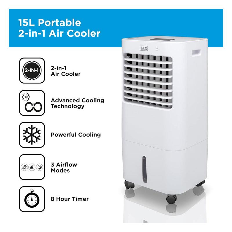 Black & Decker 15L Portable 2-in-1 Air Cooler with Remote – White