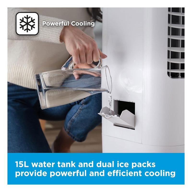 Enjoy year-round comfort with the option to use as a powerful fan or a cooling air evaporator — all in one compact unit.