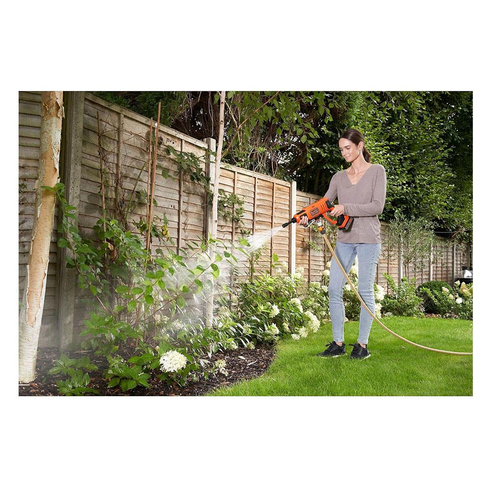 • With the spray lance you can work your Black+Decker cordless pressure washer into a plant watering system