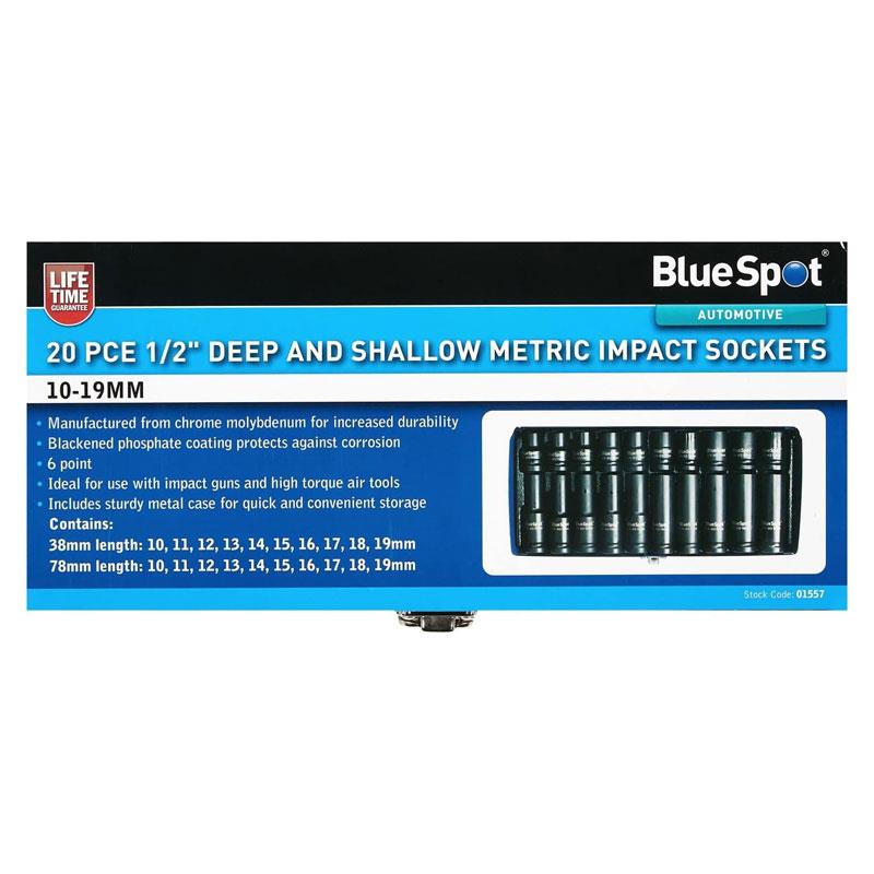 Blue Spot Tools 1/2″ Deep & Shallow Impact Socket Set (10–19mm, 20 PCE) – Chrome Molybdenum Steel