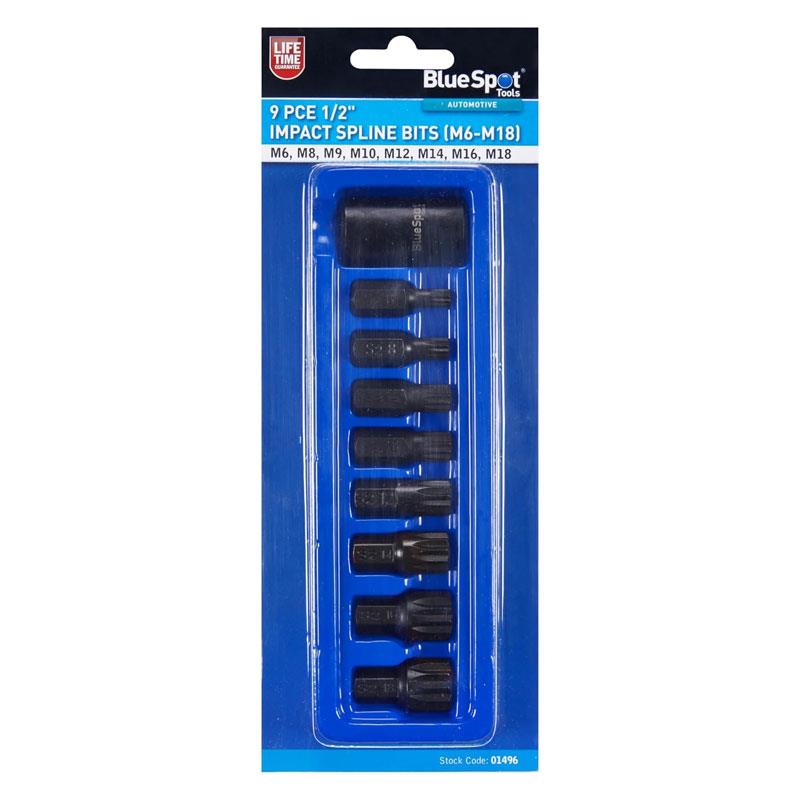 Blue Spot Tools 1/2 Inch Impact Spline Bits (M6-M18) 9 Piece