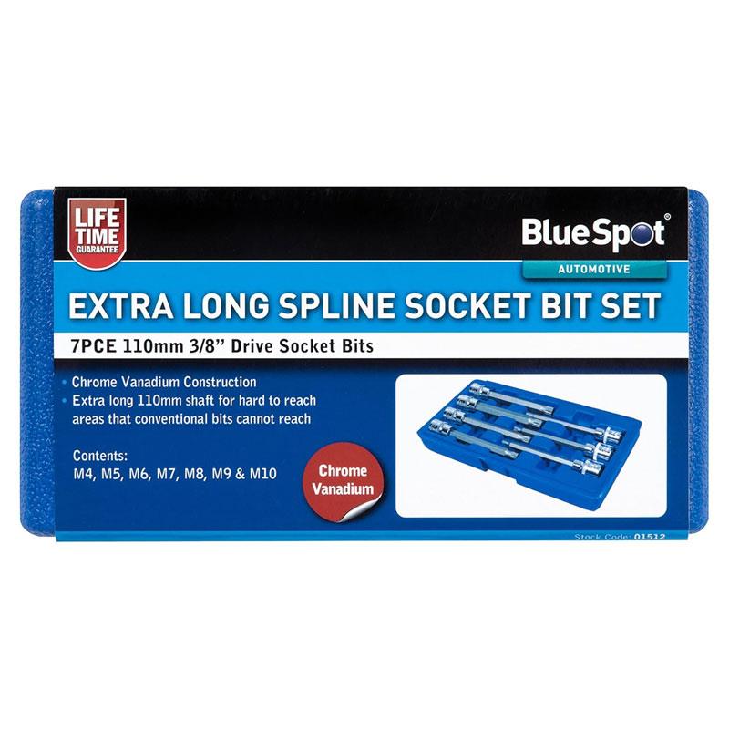 Home / DIY & Tools / Hand Tools / Socket Sets / Blue Spot Tools 3/8 Inch Extra Long Spline Socket Bit Set 7 Piece