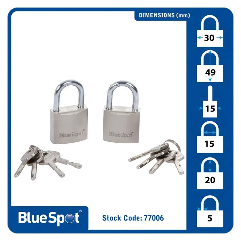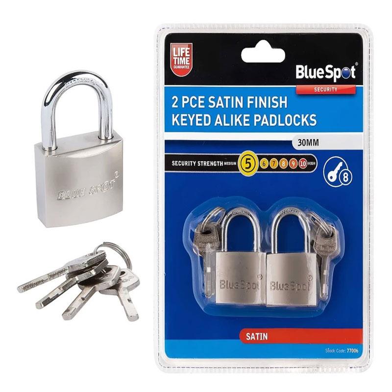 Blue Spot Tools 30mm Satin Finish Keyed Alike Padlocks With 2 x 4 Keys