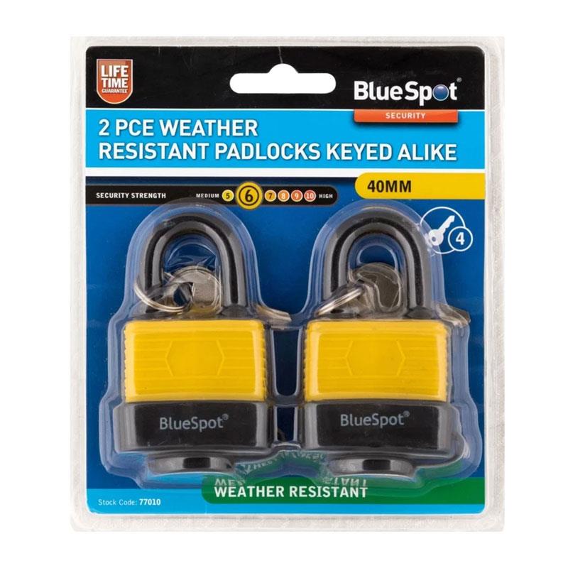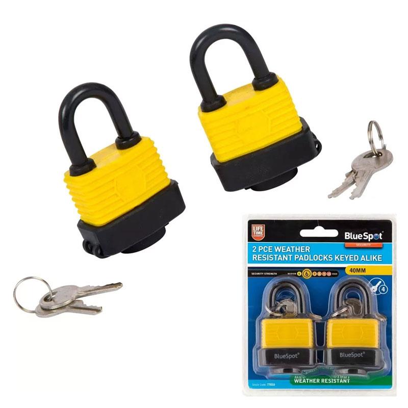 • 2 x Blue Spot 40mm Weather Resistant Padlocks (Keyed Alike)