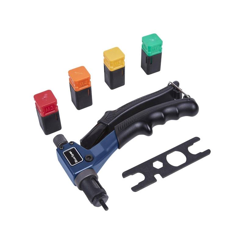 The Blue Spot Tools 8 Inch Nut Riveter Setting Tool (M3–M6) is a compact, heavy-duty solution for installing threaded rivet nuts in steel, aluminium, plastic, sheet metal, and fibreglass. Designed for both DIY users and professionals, this tool provides strong setting performance with excellent control, thanks to its ergonomic pistol-grip design.