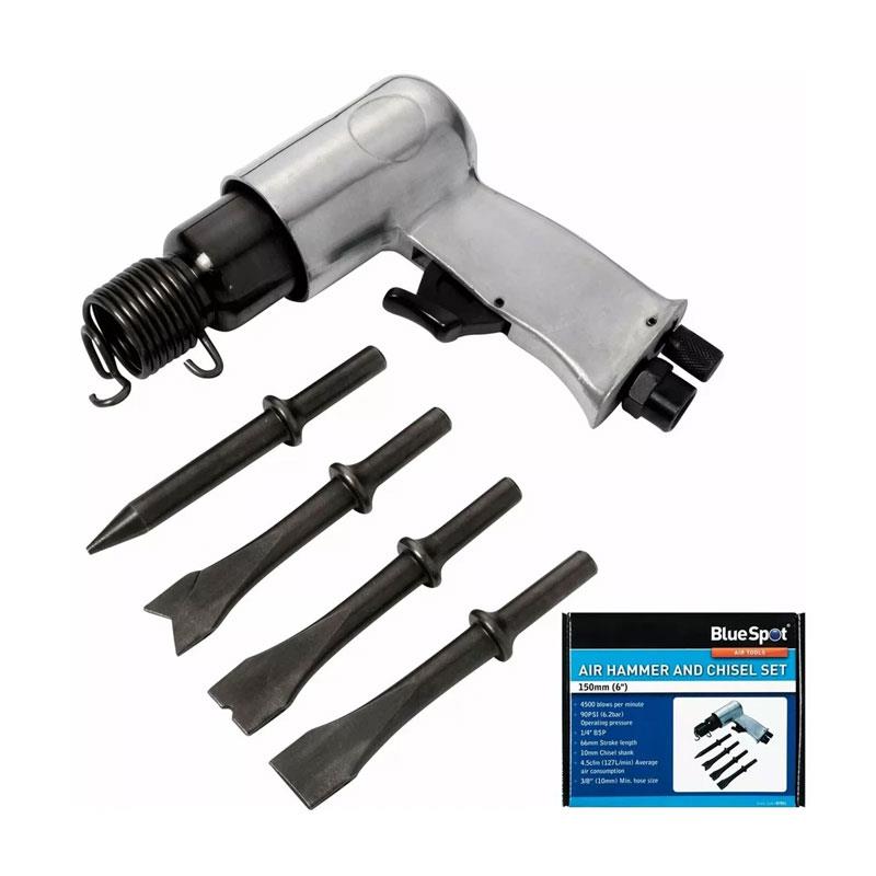 Blue Spot Tools Air Hammer & Chisel Set 150mm (6″) – Black/Silver