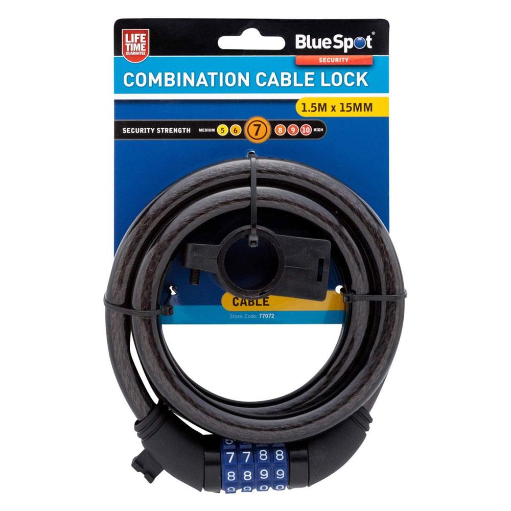 Blue Spot Tools Combination Cable Lock 1.5m x 15mm – Durable, Weather-Resistant Bike & General Security Lock
