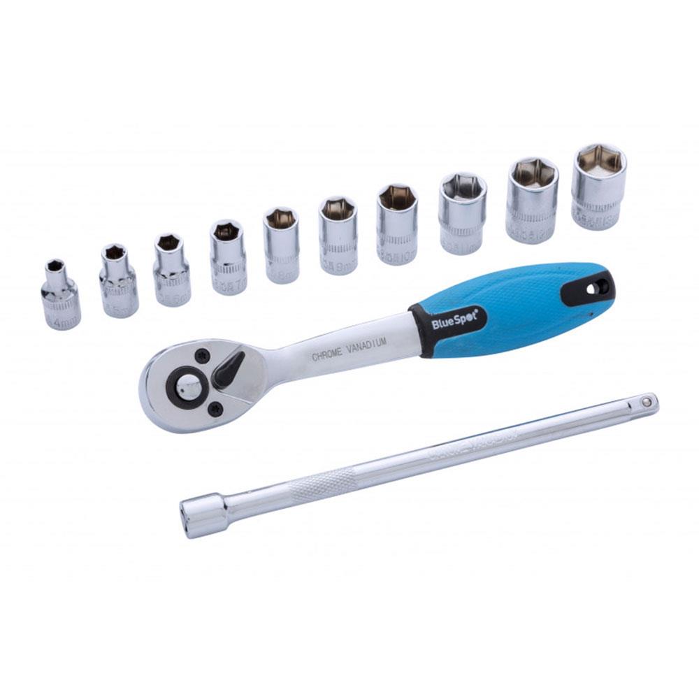 BlueSpot 1/4 Inch Metric Ratchet And Socket Set 4-13mm – 12 Piece