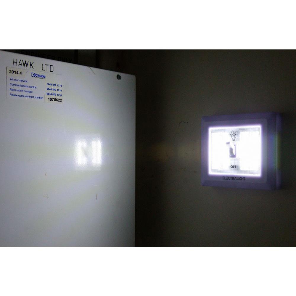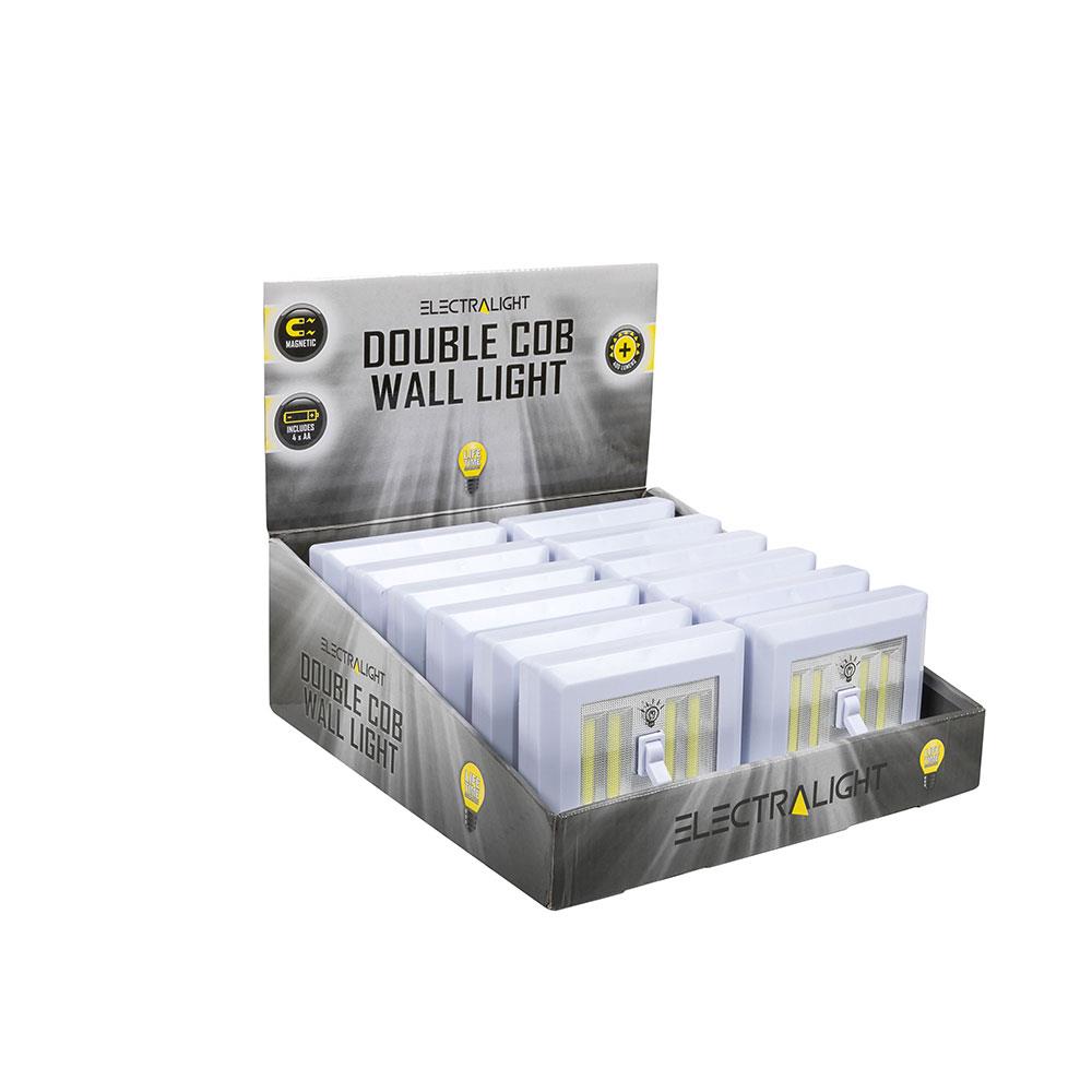Electralight Double COB Wall Light is ideal for use in cupboards, basements, hallways, bathrooms, and more. Provides 400 Lumens where needed. Manufactured with 2 screw holes for mounting on walls, 2 magnets for securing to metallic surfaces, and 2 hook & loop fasteners for placing on walls. Ideal for situations where no electricity is available.