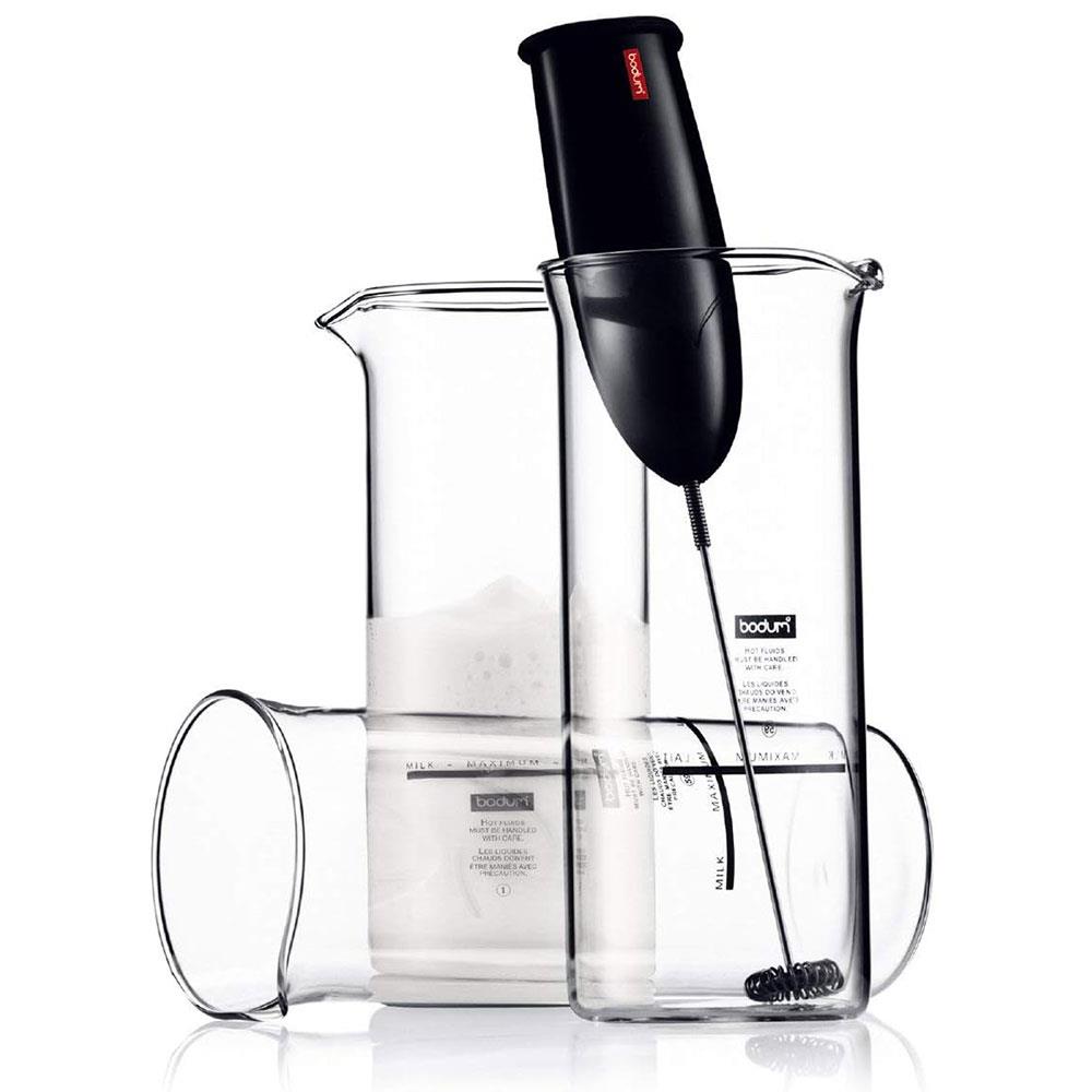 • Handheld, battery-operated Bodum Schiuma milk frother that creates café-style drinks at the push of a button
