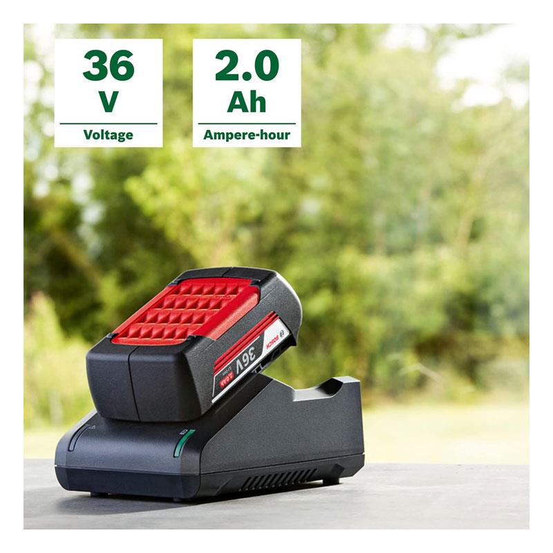 • One battery, multiple tools – compatible with all Bosch 36V Home & Garden cordless tools