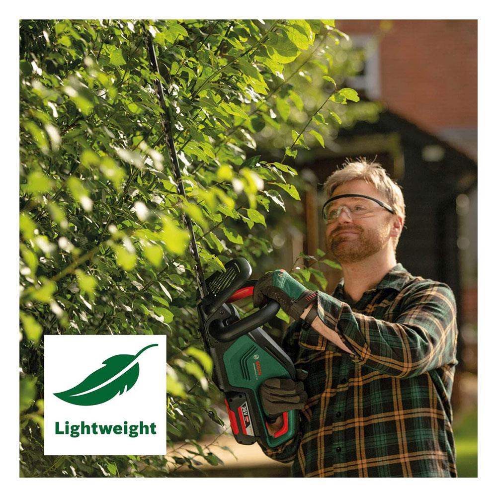 Homeowners and garden enthusiasts looking for a powerful yet easy-to-handle hedge trimmer for medium to large hedges. Compatible with all tools in the Bosch 36V Home & Garden range, making it a versatile choice for serious garden care.