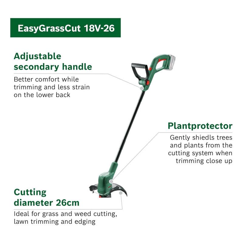 Bosch EasyGrassCut 18V-26 Cordless Grass Trimmer Body Only – Classic Green